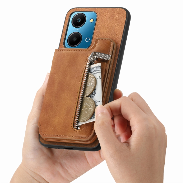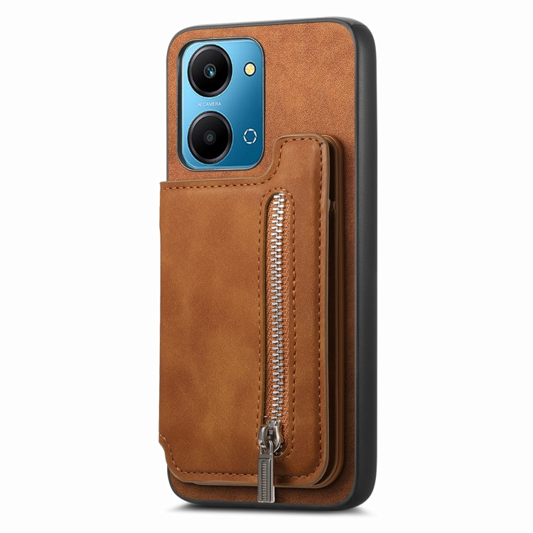 Funda para Teléfono Honor 100 con Cremallera Magsafe, Tarjetero y Cartera (Marrón)