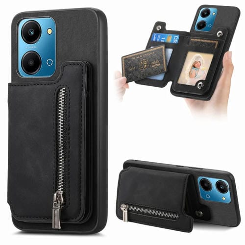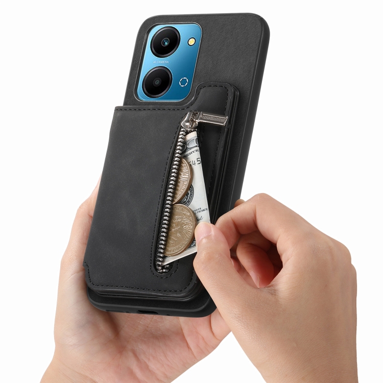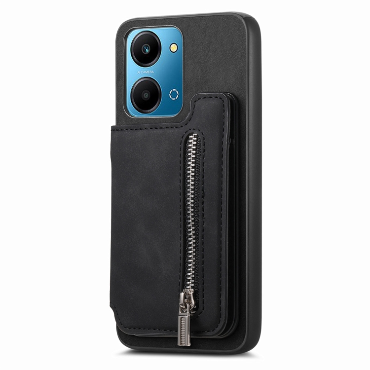 Funda para Teléfono con Cremallera Magsafe Retro para Honor Play 7T/X7A (Negra)