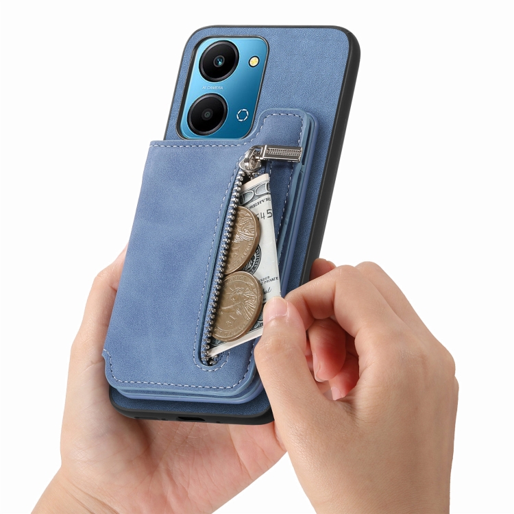 Funda para Teléfono Honor X50I con Cremallera Magsafe, Tarjetero y Cartera (Azul)