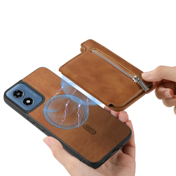 Funda para Teléfono con Cremallera Magsafe Retro Motorola Moto G Play (2024) (Marrón)