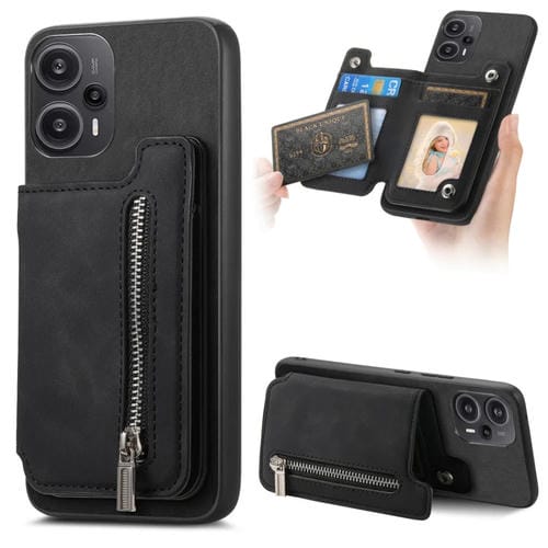 Funda para Teléfono con Cremallera Magsafe Retro para Redmi Note 12 Turbo/Poco F5 5G (Negra)