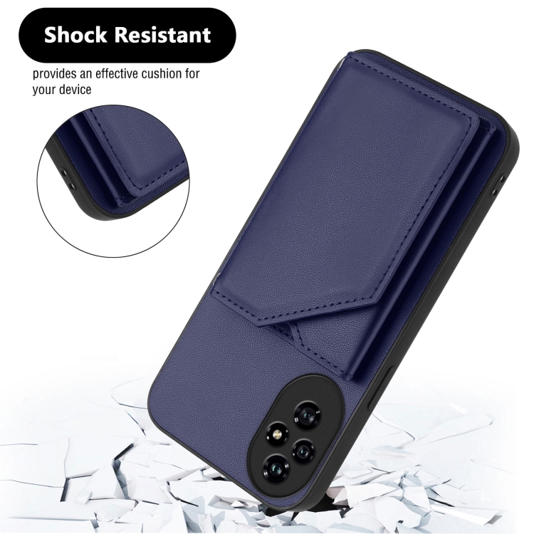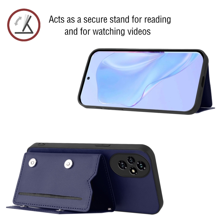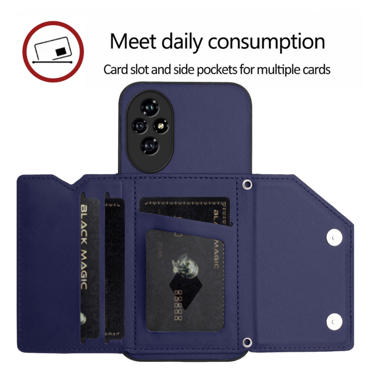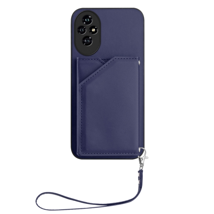 Funda para Honor 200 Skin Feel con 4 Ranuras para Tarjetas y Correa para Muñeca (Azul)