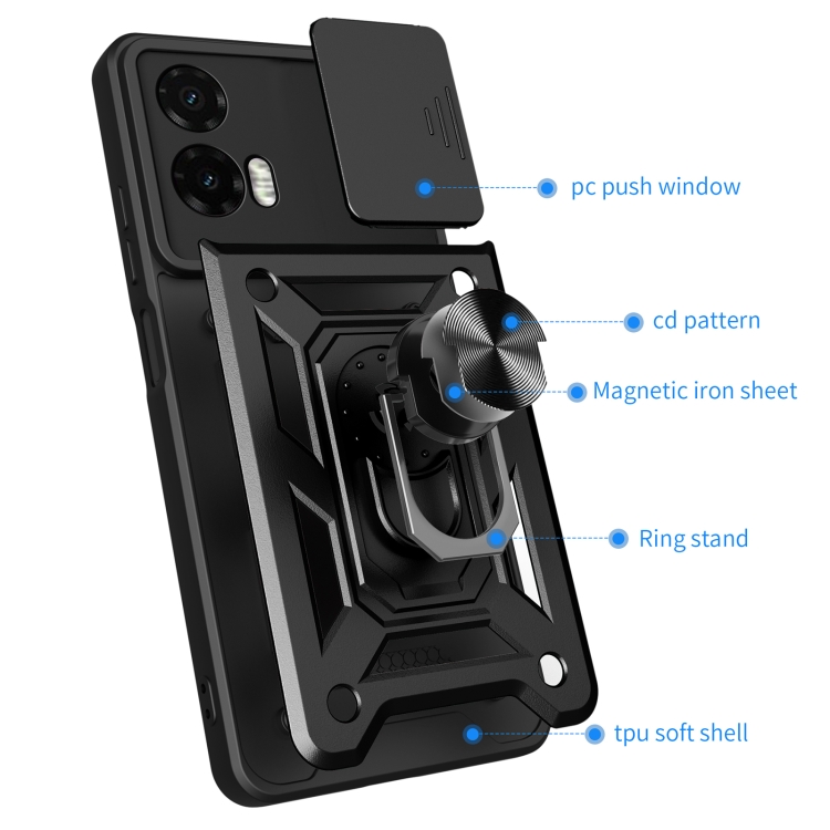 Funda para Motorola Moto G35 5G con Cámara Deslizante Carcasa Híbrida TPU y PC (Plateada)