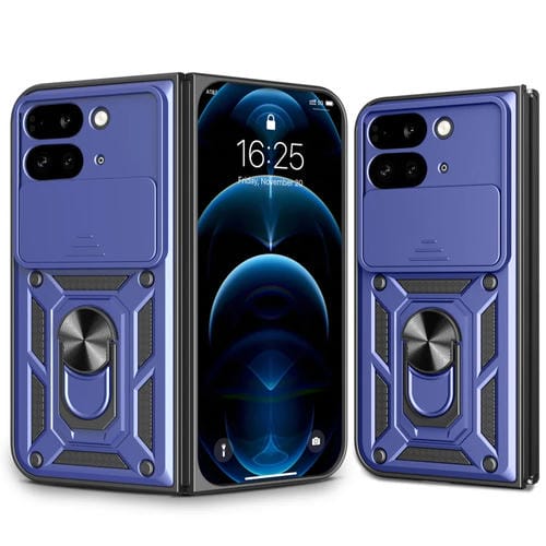 Funda para Teléfono Google Pixel 9 Pro con TPU y PC y Tapa Deslizante para Cámara (Azul)