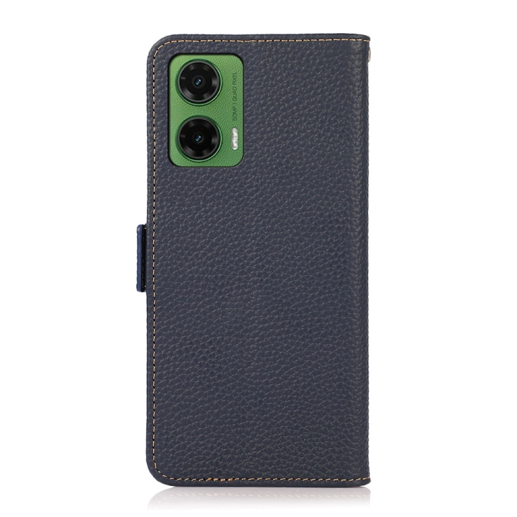 Funda para Teléfono Motorola Moto G35 Khazneh con Imán Lateral Rfid Cuero Genuino (Azul)