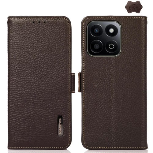 Funda para Teléfono Khazneh Cuero Genuino Lichi con Imán y Rfid para Honor 200 Smart/Play 60 Plus (Marrón)