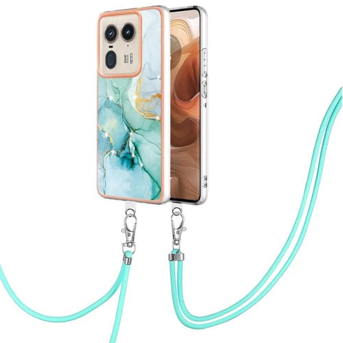 Funda para Teléfono Motorola Edge 50 Ultra con Imd Doble Cara y Galvanoplastia Mármol con Cordón (Verde)