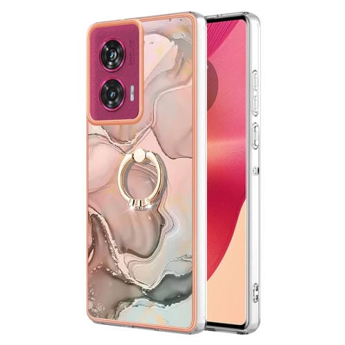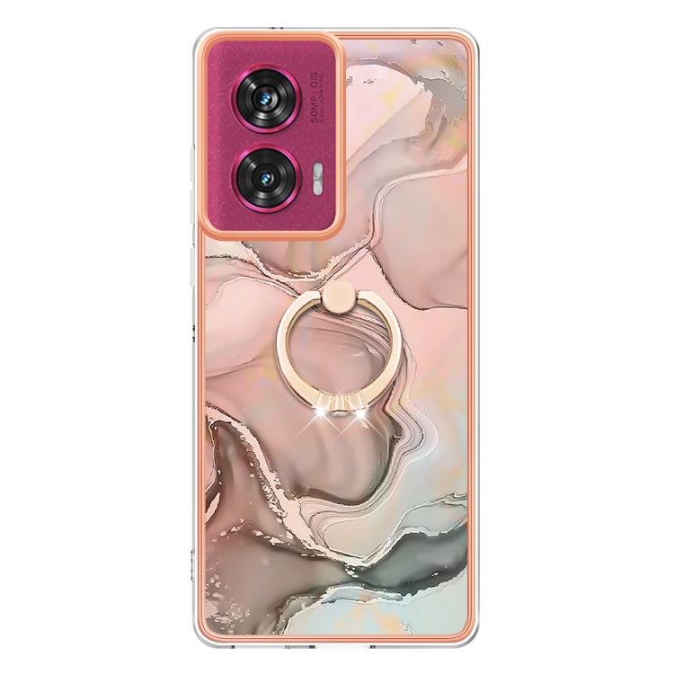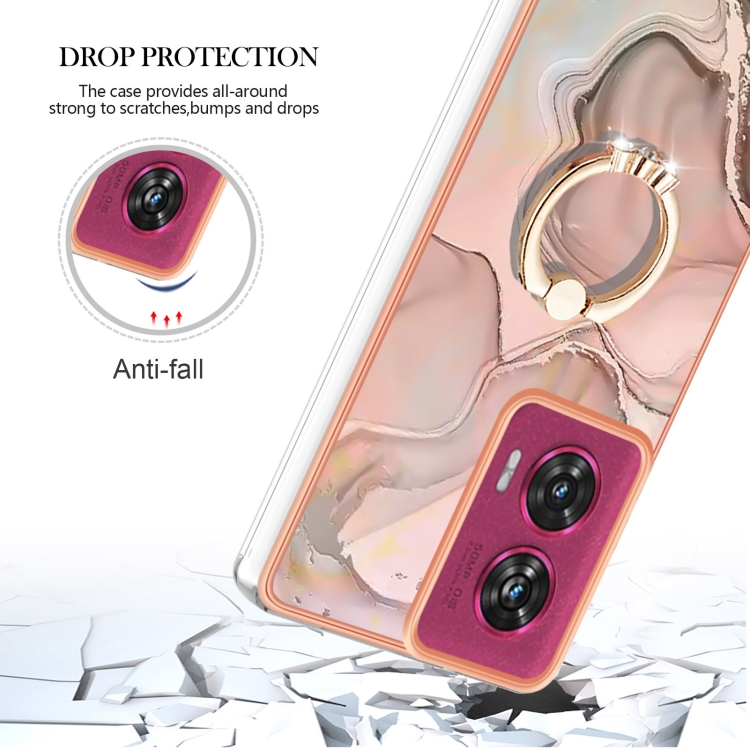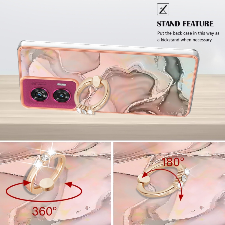 Funda para Teléfono Motorola Edge 50 Fusion con Imd Doble Cara, Galvanoplastia Mármol y Anillo (Oro Rosa)