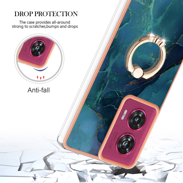 Funda para Motorola Edge 50 Fusion con IMD Doble Cara, Galvanoplastia Mármol y Anillo (Verde)