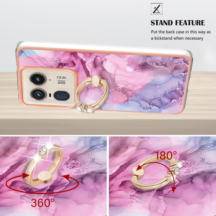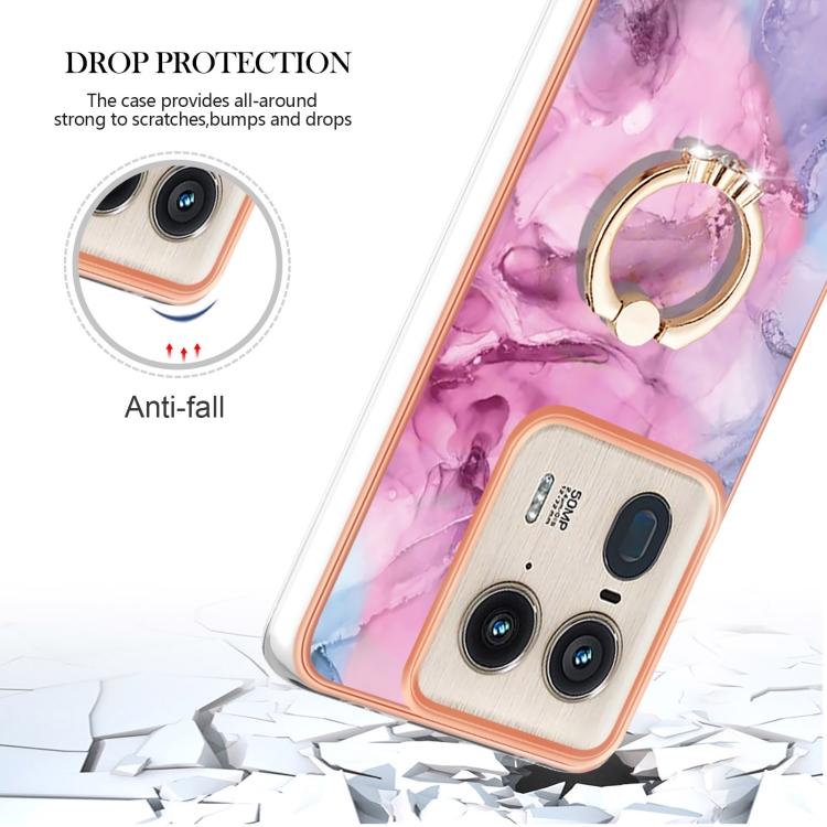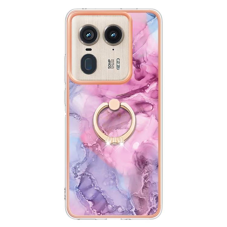 Funda para Teléfono Motorola Edge 50 Ultra con Imd Doble Cara, Galvanoplastia Mármol y Anillo (Rosa)