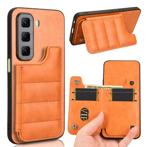 Funda para Teléfono Infinix Hot 50 5G con Patrón de Vaca y Tarjeta de Costura (Naranja)