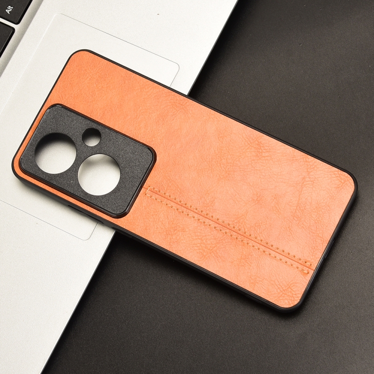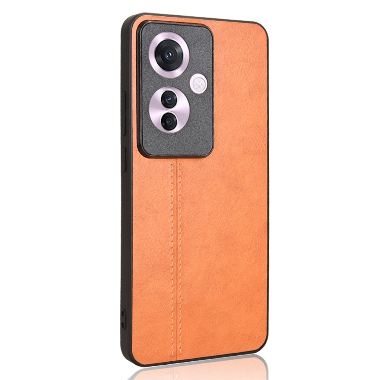Funda para Teléfono con Patrón de Vaca para Oppo Reno11 A, Versión Japonesa, con Tarjeta de Costura (Naranja)