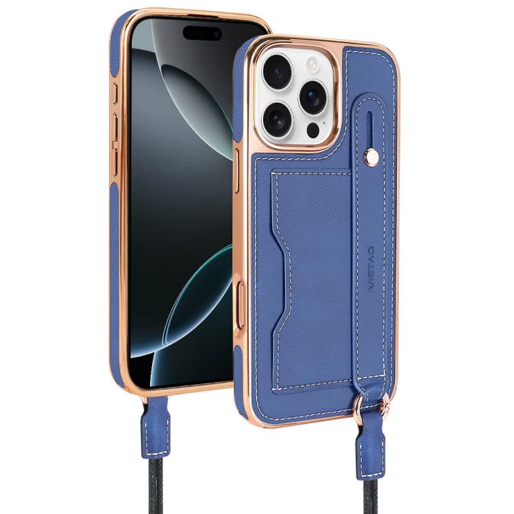 Funda para Teléfono Vietao iPhone 16 Pro Ranura para Tarjeta y Correa para Muñeca (Azul)