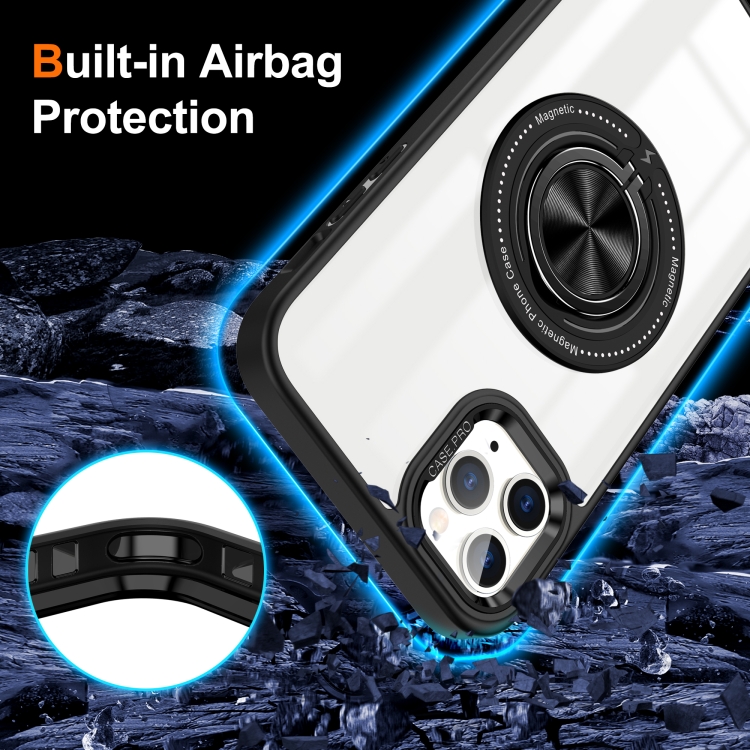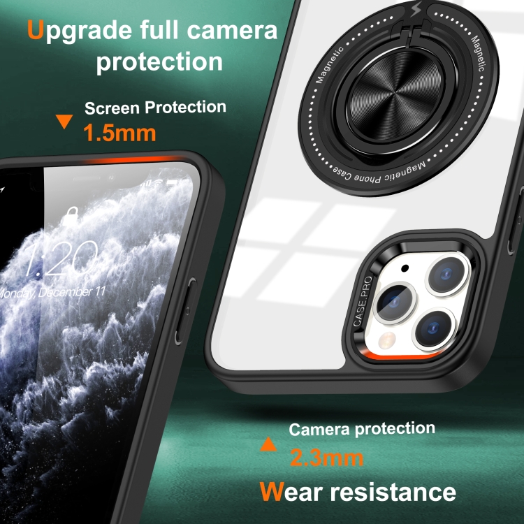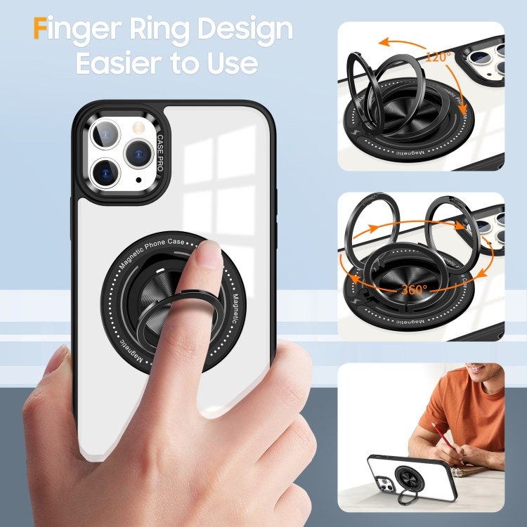 Funda para Teléfono iPhone 11 Pro Max con Soporte Anillo Giratorio Magnético (Negro)