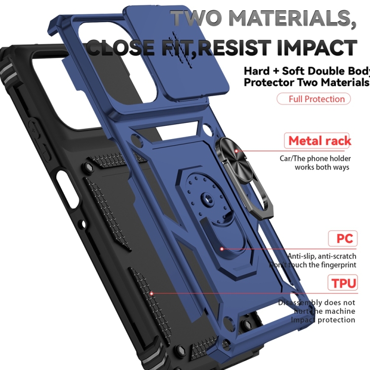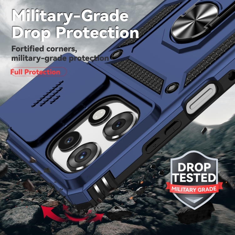 Funda para Teléfono Motorola Moto G Play 2025/G Power 2025 con Soporte Deslizante y Protector de Pantalla (Azul)