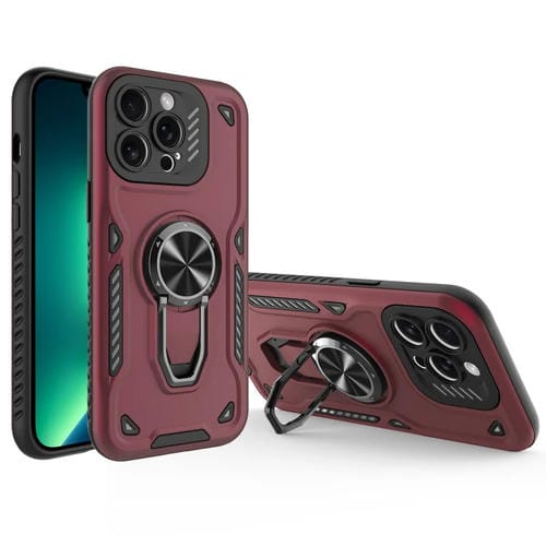 Funda para Teléfono iPhone 13 Pro Max Soporte Giratorio Metal TPU PC (Rojo Oscuro)