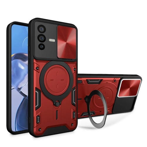 Funda para Teléfono con Soporte Magnético Deslizante con Textura de Cd para Vivo V23 5G/S12 5G (Rojo)
