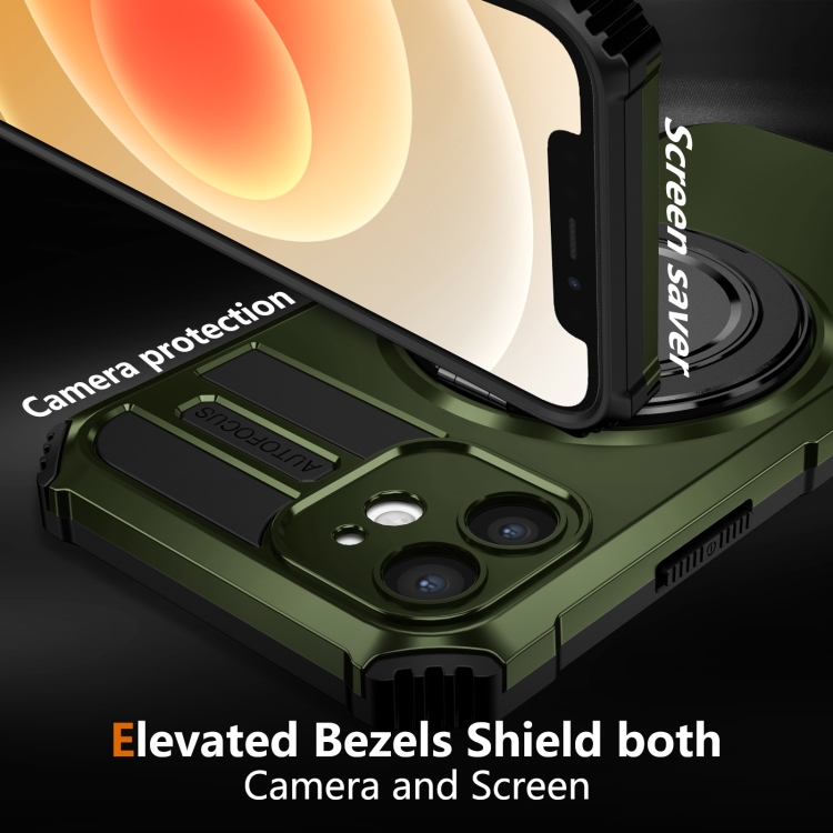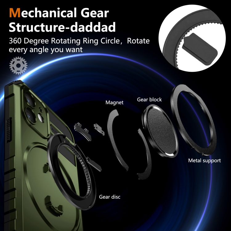 Funda para Teléfono iPhone 12 con Soporte Magnético Giratorio (Verde Oscuro)