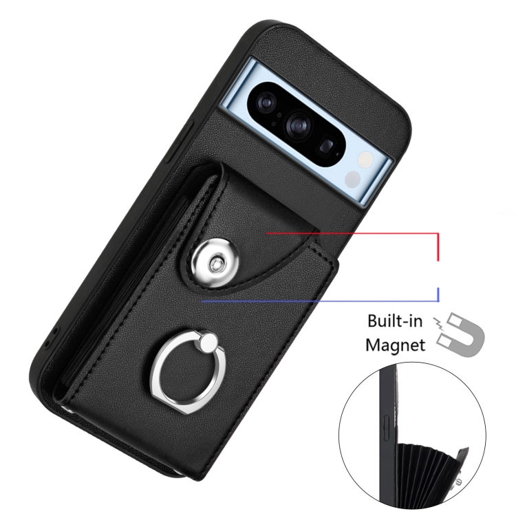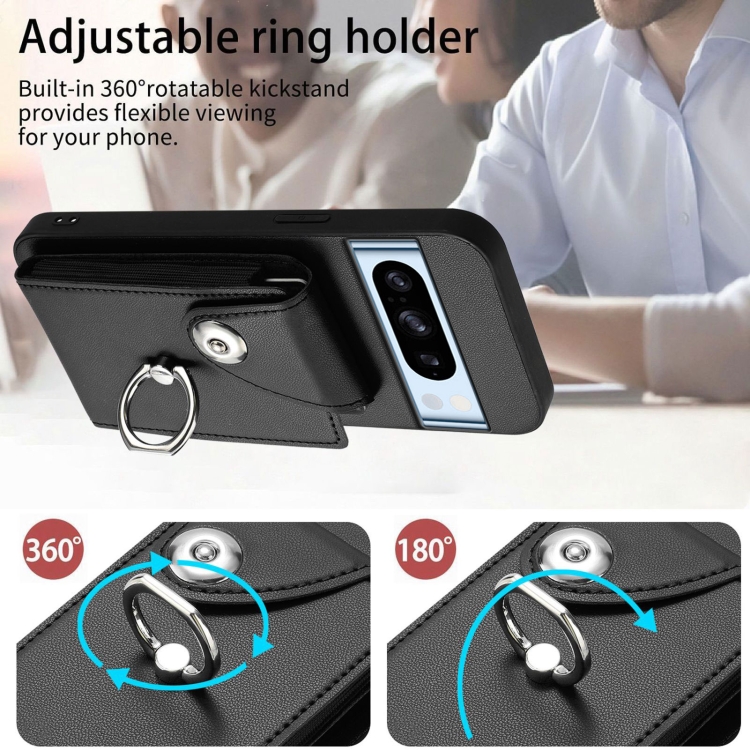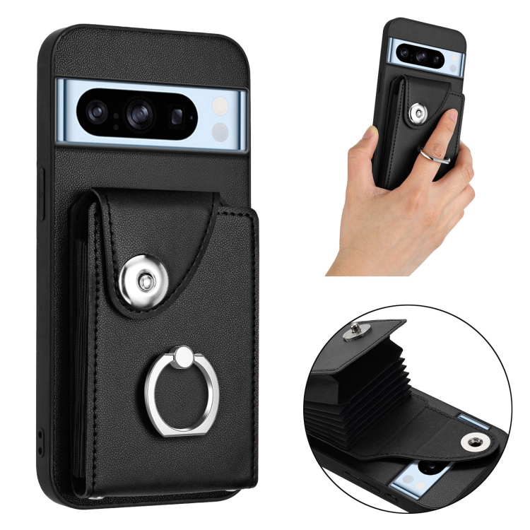 Funda para Teléfono Google Pixel 8 Pro con Soporte para Tarjetas y Anillo (Negra)