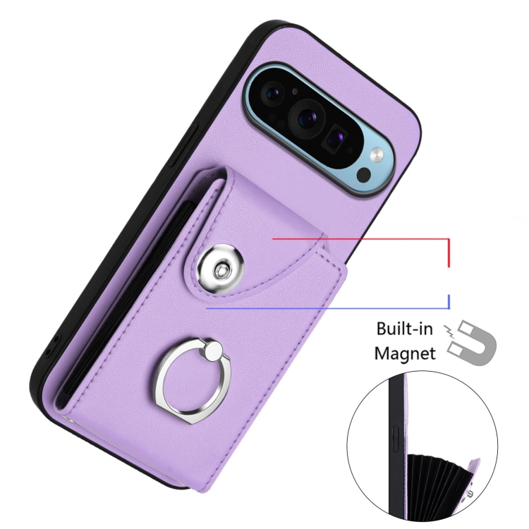 Funda para Teléfono Google Pixel 9/9 Pro con Soporte Tarjetas y Anillo (Morado)