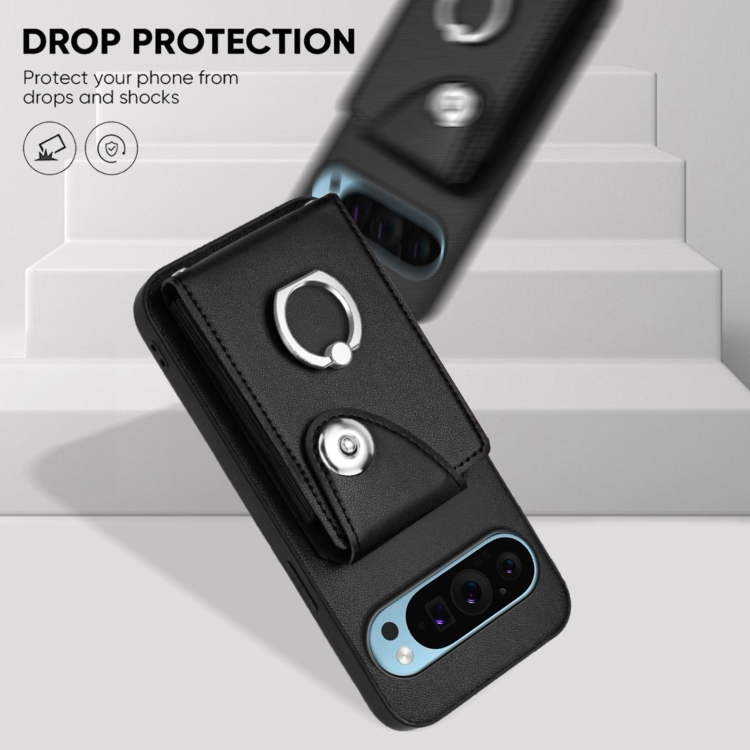 Funda para Google Pixel 9 y 9 Pro con Soporte, Tarjetero y Anillo (Negra)