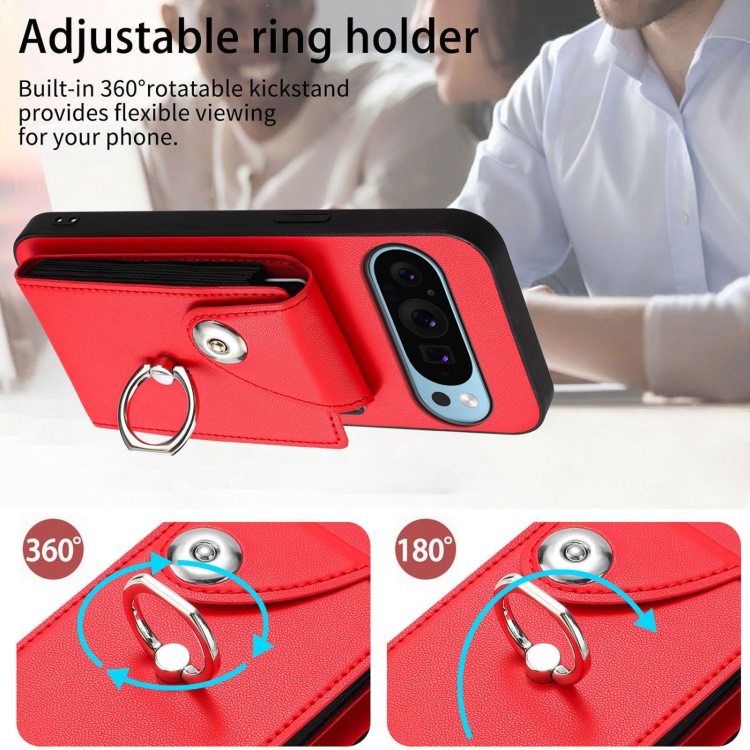 Funda para Teléfono Google Pixel 9/9 Pro con Soporte, Tarjetas y Anillo (Rojo)