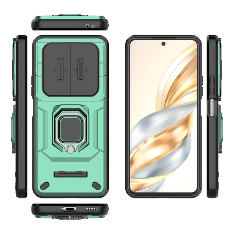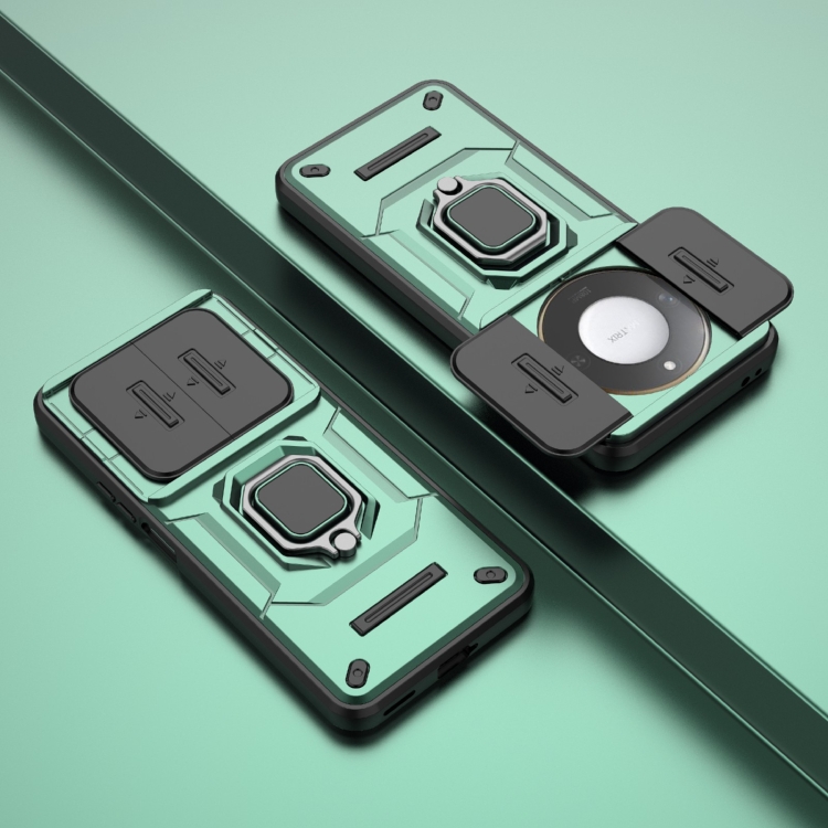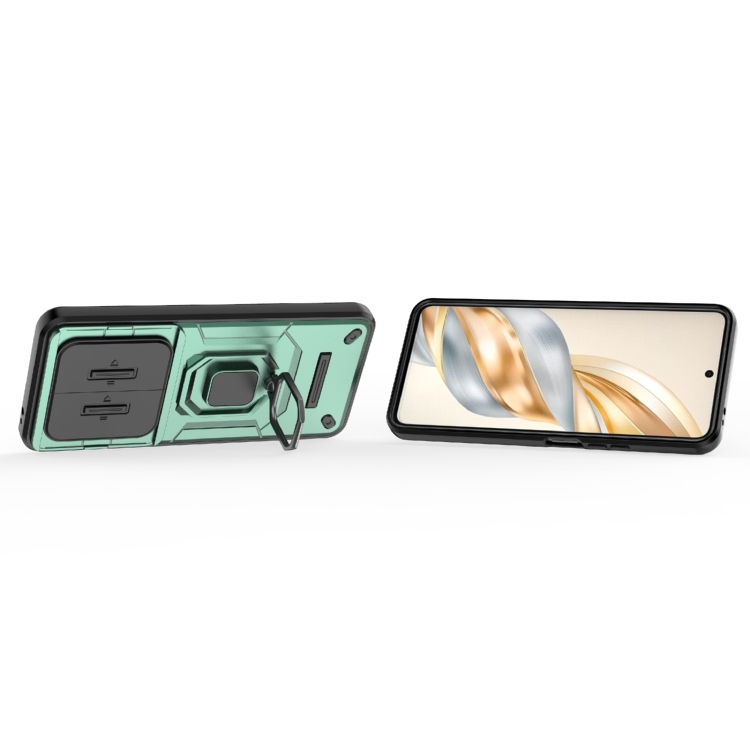 Funda para Honor X60 5G con Soporte y Carcasa Deslizante TPU y PC (Verde)