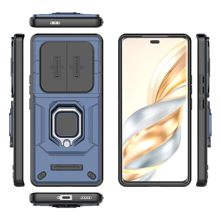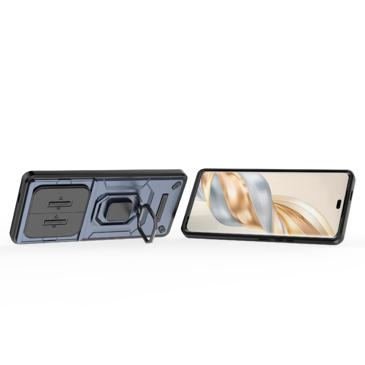 Funda para Teléfono Honor X60 Pro 5G con Soporte y Carcasa Deslizante TPU y PC (Azul)