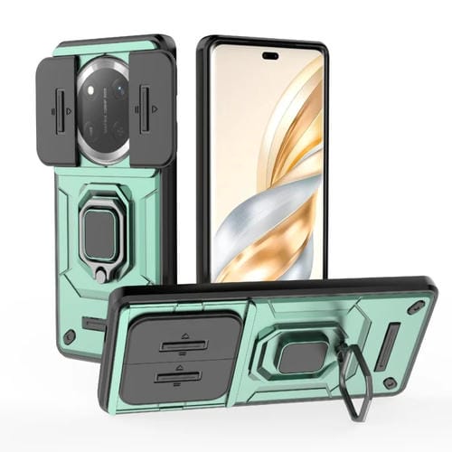 Funda para Teléfono Honor X60 Pro 5G con Soporte y Carcasa Deslizante TPU y PC (Verde)