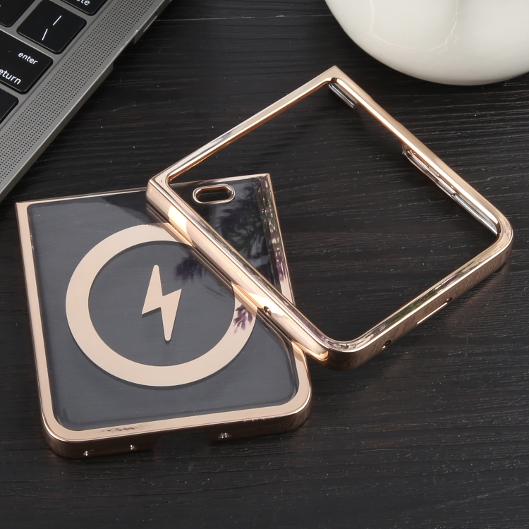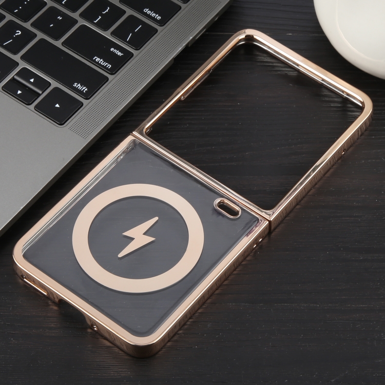 Funda para Teléfono con Tapa 6D Brillante Acabado Galvanizado Magsafe para Honor Magic V (Dorado)