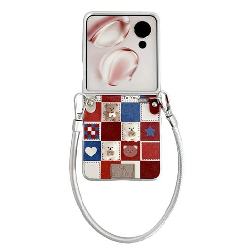 Funda para Teléfono Honor Magic V con Tapa Osito de Peluche y Correa para Muñeca (Plateada)