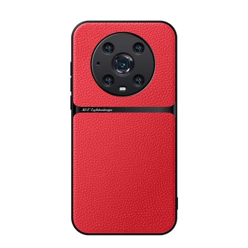 Funda para Teléfono Honor Magic4 Pro con Tapa Magnética de Cuero Litchi y Protección Contra Golpes (Rojo)