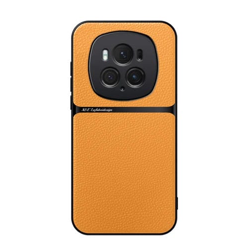Funda para Teléfono Honor Magic6 Pro con Tapa Magnética de Cuero Litchi y Protección Total (Amarillo)