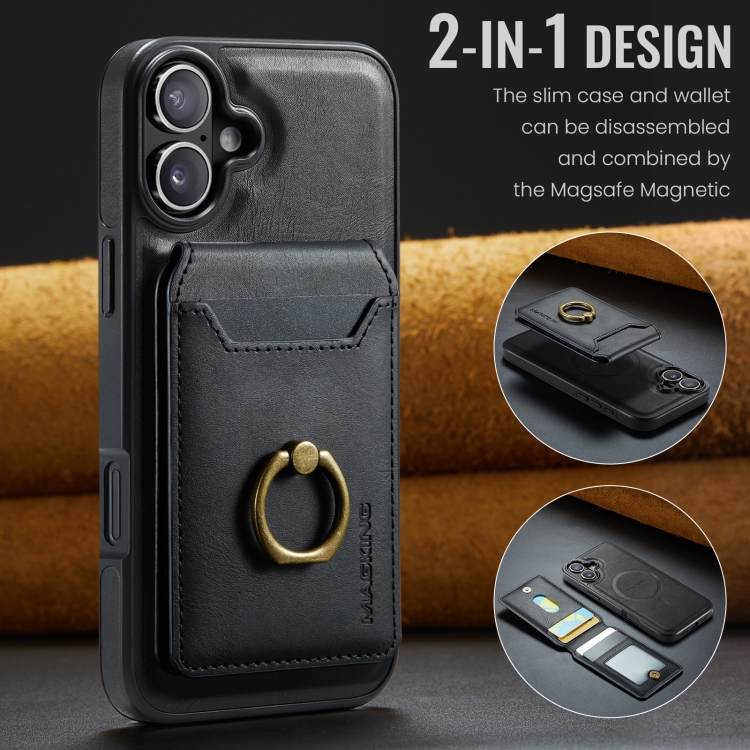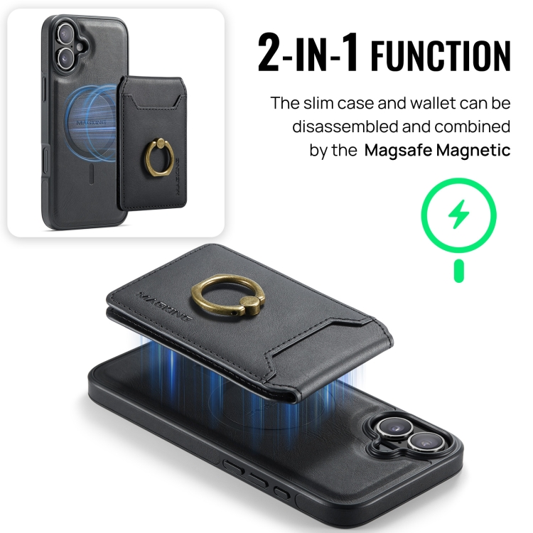 Funda para Teléfono Dg.Ming K1 Magsafe con Tapa Trasera Rfid y Billetera Desmontable para iPhone 16 (Negra)