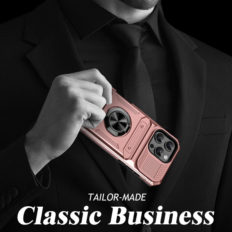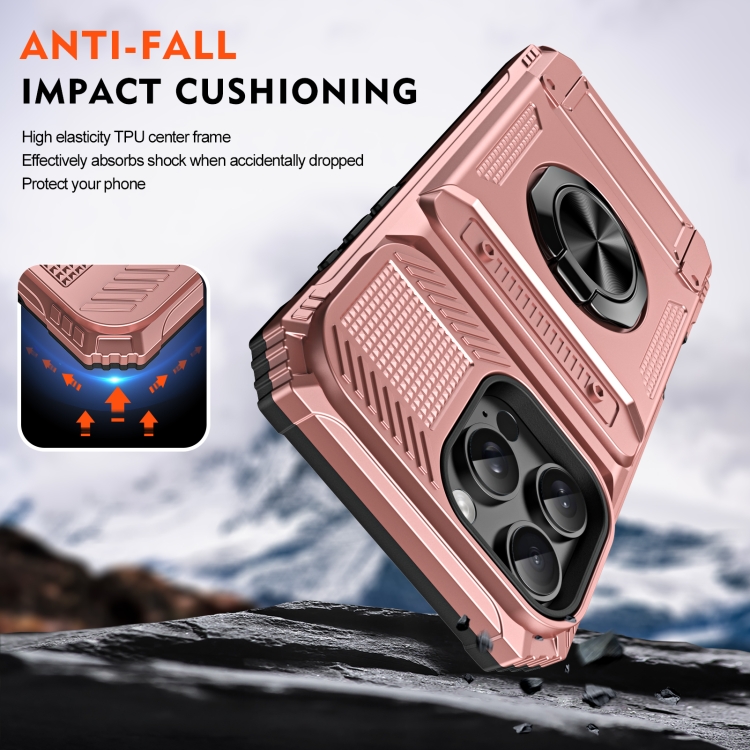 Funda para Teléfono iPhone 16 Pro Max TPU+PC con Tarjetero y Soporte de Anillo (Oro Rosa)