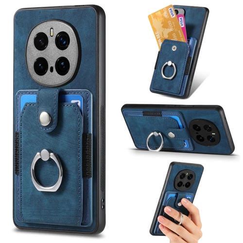 Funda para Teléfono Honor Magic7 Pro con Tarjetero y Anillo Tacto Piel (Azul)