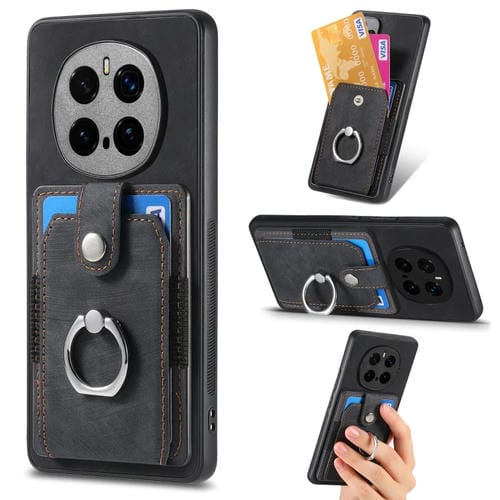 Funda para Teléfono Honor Magic7 Pro con Tarjetero y Anillo Tacto de Piel (Negra)