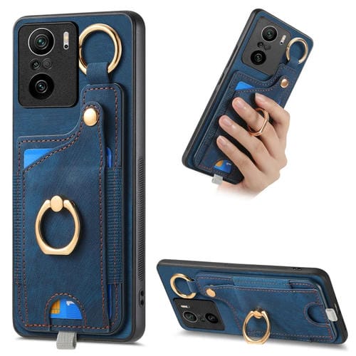 Funda para Teléfono con TaRJetero y Anillo con Tacto de Piel Estilo Retro para Redmi K40 con Lazo para Colgar (Azul)