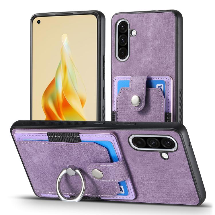 Funda para Teléfono Samsung Galaxy A36 con Tarjetero y Anillo Tacto de Piel (Morado)