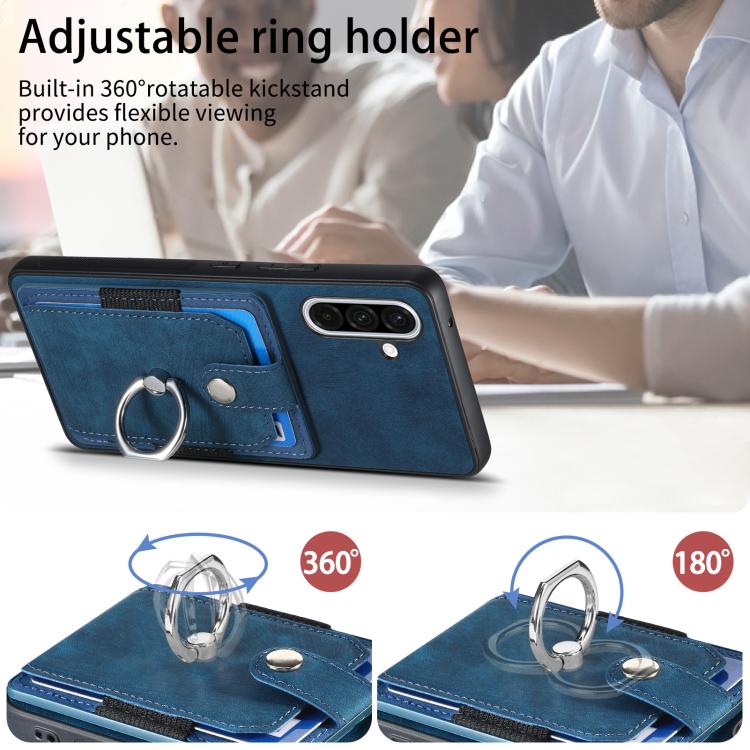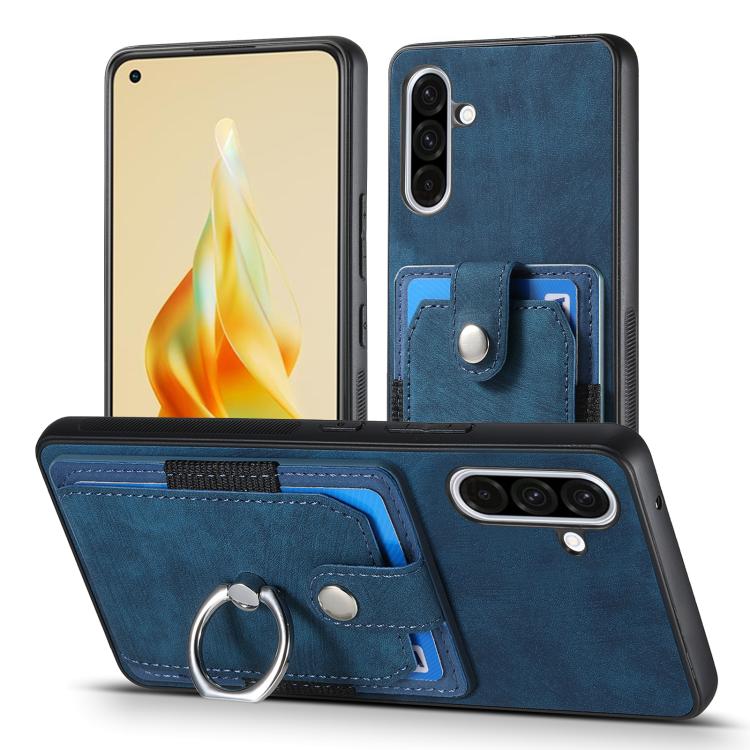 Funda para Teléfono Samsung Galaxy A36 con Tarjetero y Anillo Tacto Retro (Azul)