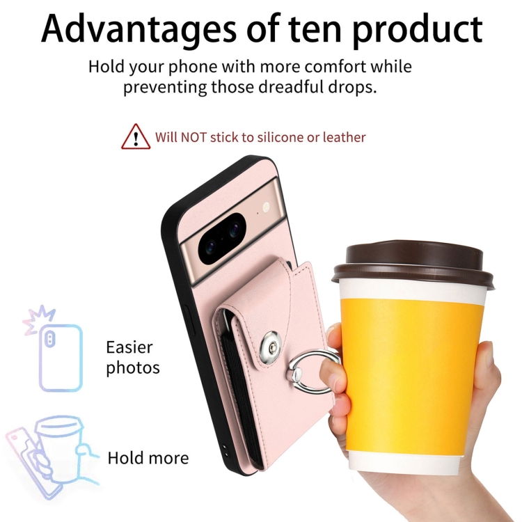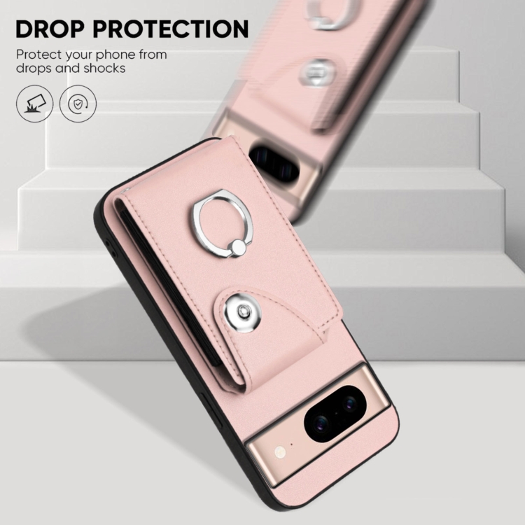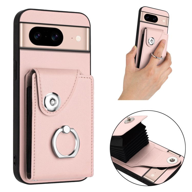 Funda para Teléfono Google Pixel 8A con Tarjetero y Anillo (Rosa)