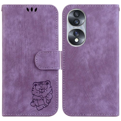 Funda de Cuero con Relieve Little Tiger para Honor 70 (Púrpura)