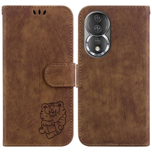 Funda de Cuero con Relieve Little Tiger para Honor 80 (Marrón)