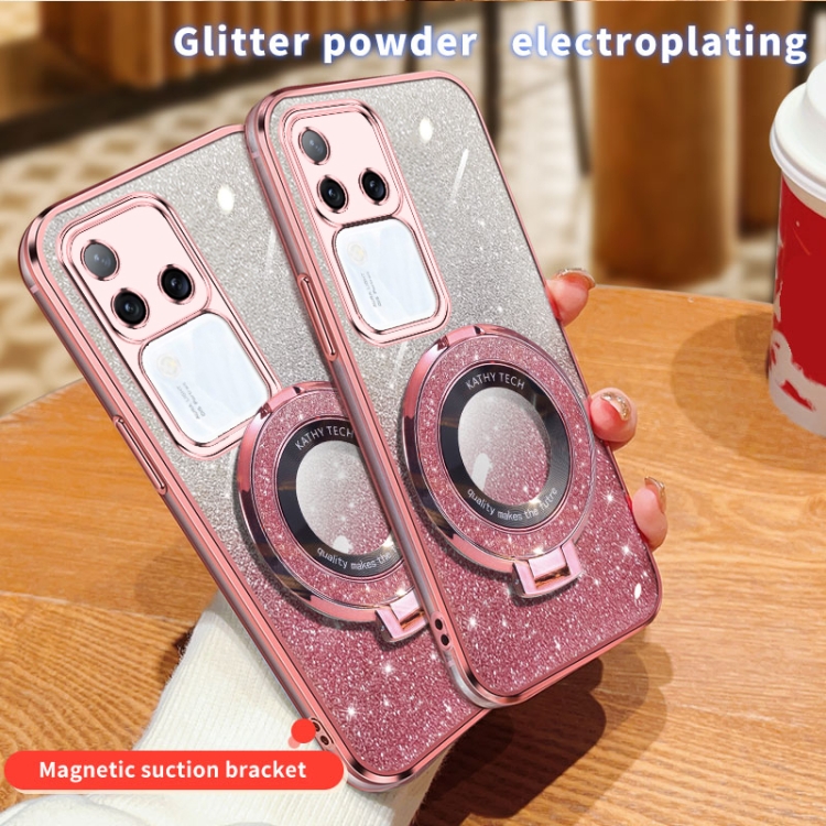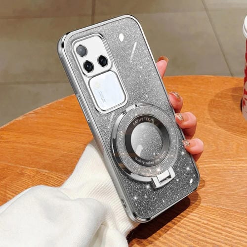 Funda para Teléfono de TPU con Soporte Redondo con Purpurina Degradada Plateada para Vivo S18 Pro (Plateada)