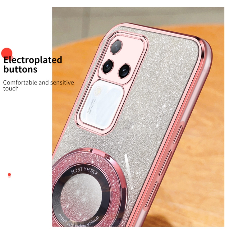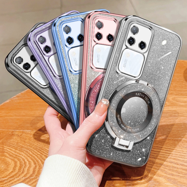 Funda para Teléfono de TPU con Soporte Redondo y Purpurina Degradada Plateada para Vivo S18 Pro (Rosa)