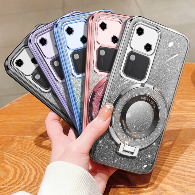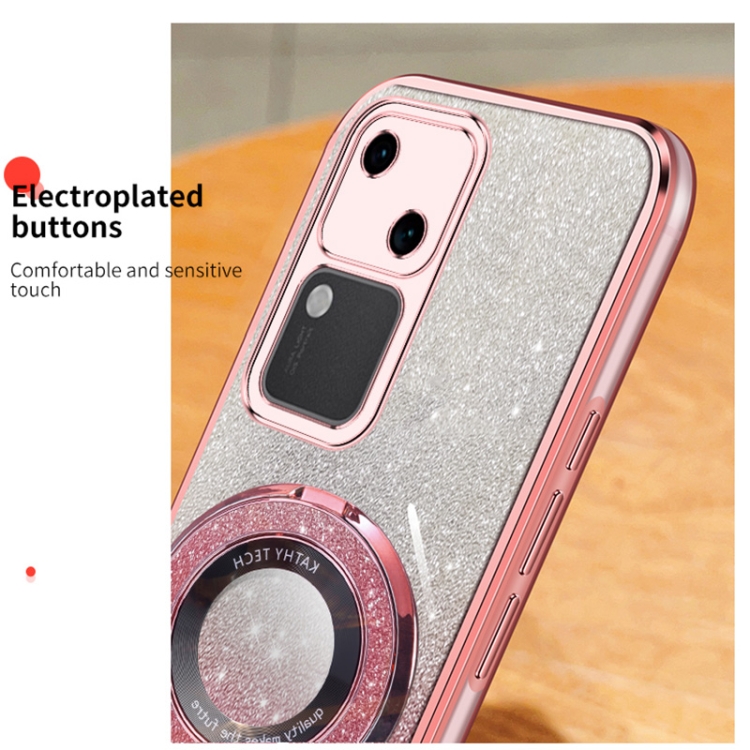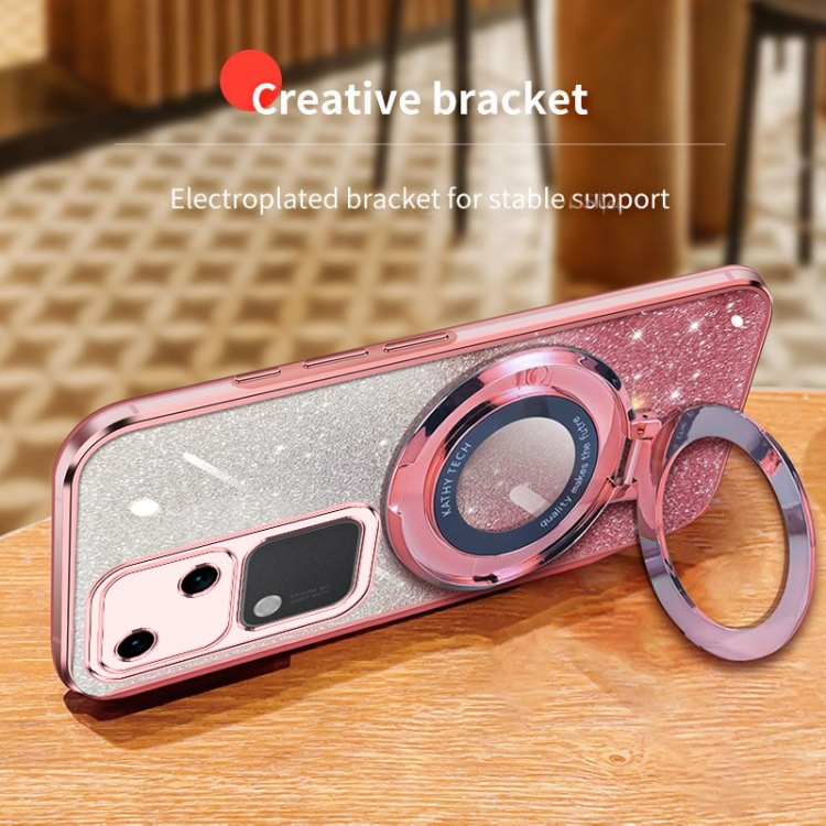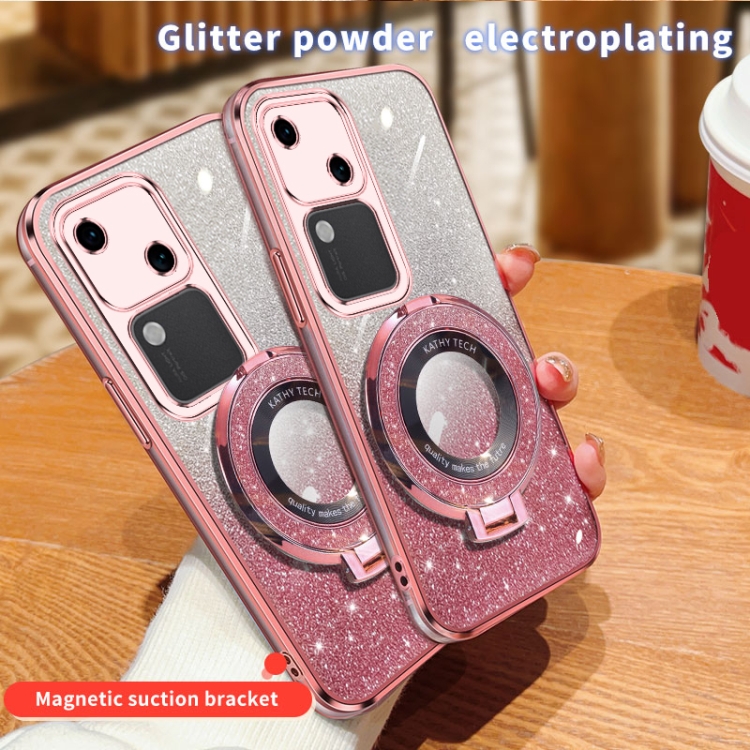 Funda para Teléfono de TPU con Soporte Redondo y Purpurina Degradada Plateada para Vivo S18 (Rosa)