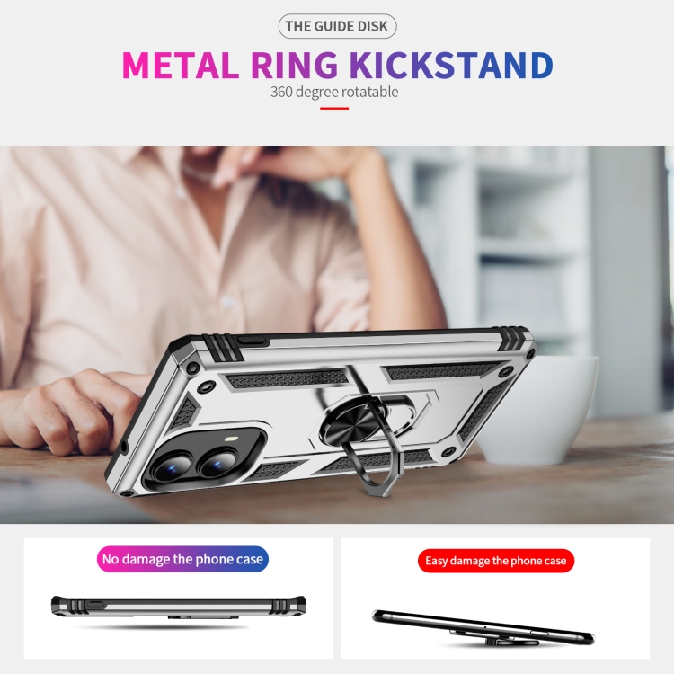 Funda para Teléfono Motorola Edge (2024) de TPU + PC a Prueba de Golpes con Soporte (Plateada)