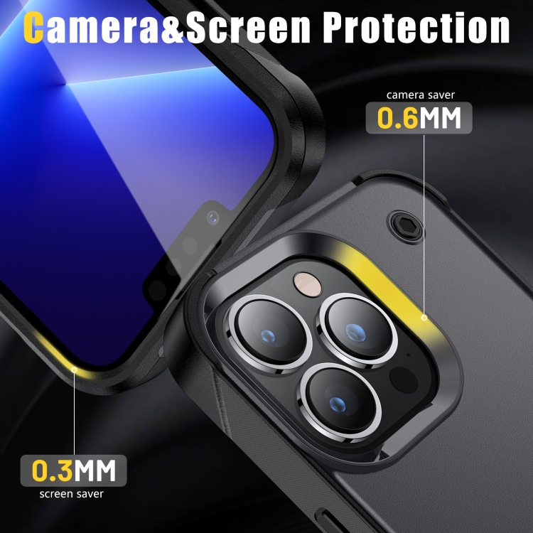 Funda para Teléfono PC + TPU iPhone 14 Max a Prueba de Golpes con Soporte (Gris + Negro)