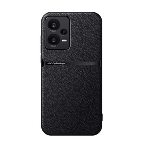 Funda para Teléfono Redmi Note 12 5G Global Litchi de Cuero con Cobertura Total Magnética a Prueba de Golpes (Negro)