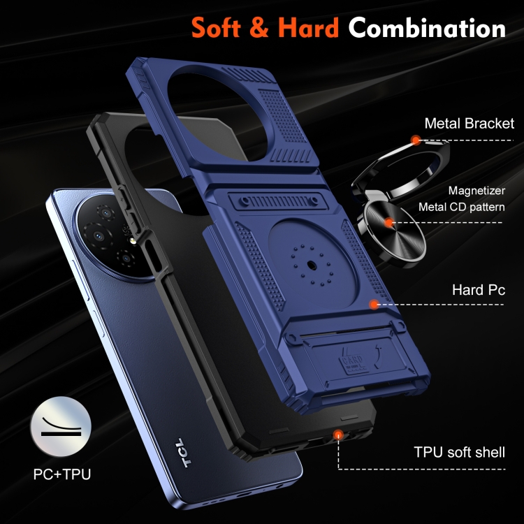 Funda para Teléfono TCL 50 XL 5G TPU Híbrida con Soporte de Anillo Metal y Protección (Azul)